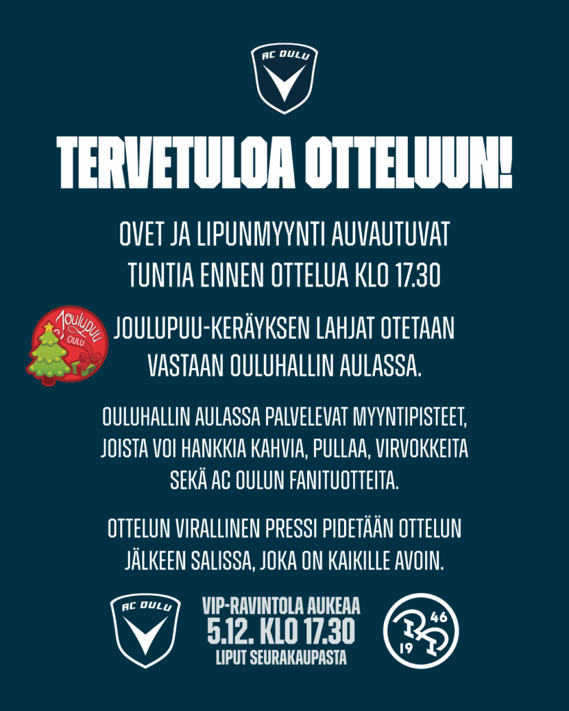 AC Oulu Basketin perjantaisessa kotiottelussa Ouluhallissa sinäkin pääset tekemään joulun taikoja Joulupuu-keräyksen avulla. Ouluhallilla on nimittäin käytössä Joulupuu-keräyksen lahjojen tuontipiste, jonne jokainen pääsee tuomaan parhaaksi katsomansa lahjan.