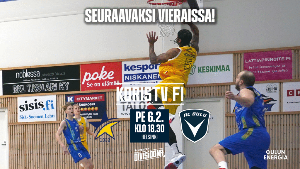ToPo – AC Oulu Basket käynnistyy perjantaina Helsingissä klo 18.30. Pääset tuttuun tapaan Laivastonsiniseen tunnelmaan mukaan KorisTV:n välityksellä.