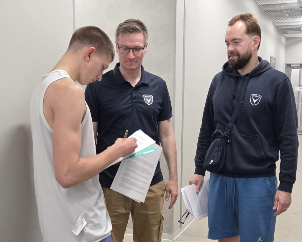 – Hän pystyy ikänsä puolesta pelaamaan vielä yhteistyöseura ONMKY:n U19-joukkueessa. Eino esiintyikin edukseen Espoon valmistavassa turnauksessa elokuussa, jossa oli U19-ikäluokan Suomen kärkijoukkueita mukana, Valkama kertoo.