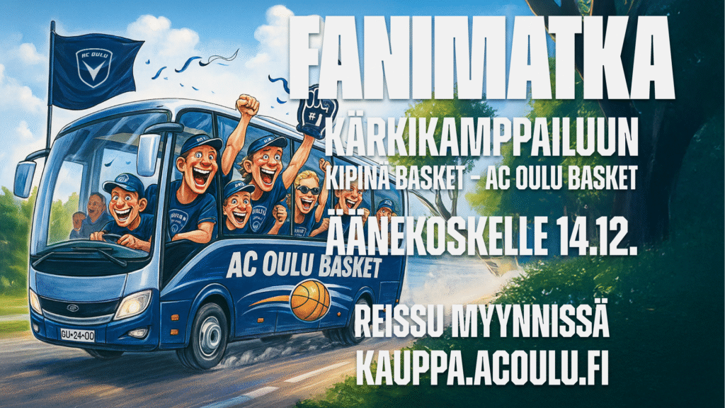 AC Oulu Basket järjestää seurahistorian ensimmäisen fanimatkan lauantaina 14.12., kun suuntaamme yhdessä Äänekoskelle kärkikamppailuun. Vastassa on sarjakakkonen – ja Laivastonsinisen perheen tuki on tärkeämpi kuin koskaan.